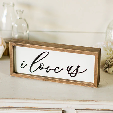 DetailA great way to add a loving tone and atmosphere to any space our I Love Us Sign will complement the look of your home with its classic and neutral design. Crafted of distressed metal and wood the rustic look of this sign is perfect for your farmhouse-inspired home. Not only is this heartfelt sign perfect on a wall but it is also the ideal size for a vignette. Add this timeless and versatile piece to your entryway table wall shelf or any tabletop and fill your home with warmth and charm. Anywhere you place this sign you can be sure that it will add joy to your day! Enjoy!